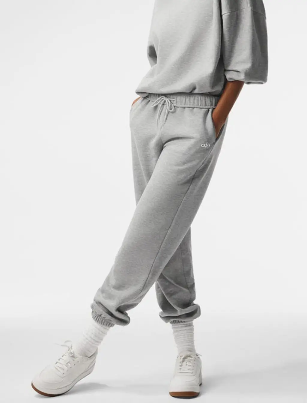 بنطلون من الو بقصه مريحه وواسعة ، قطن ثقيل ناعم وشعار جانبي بسيط خيال مثالي لإطلالة يومية مريحة