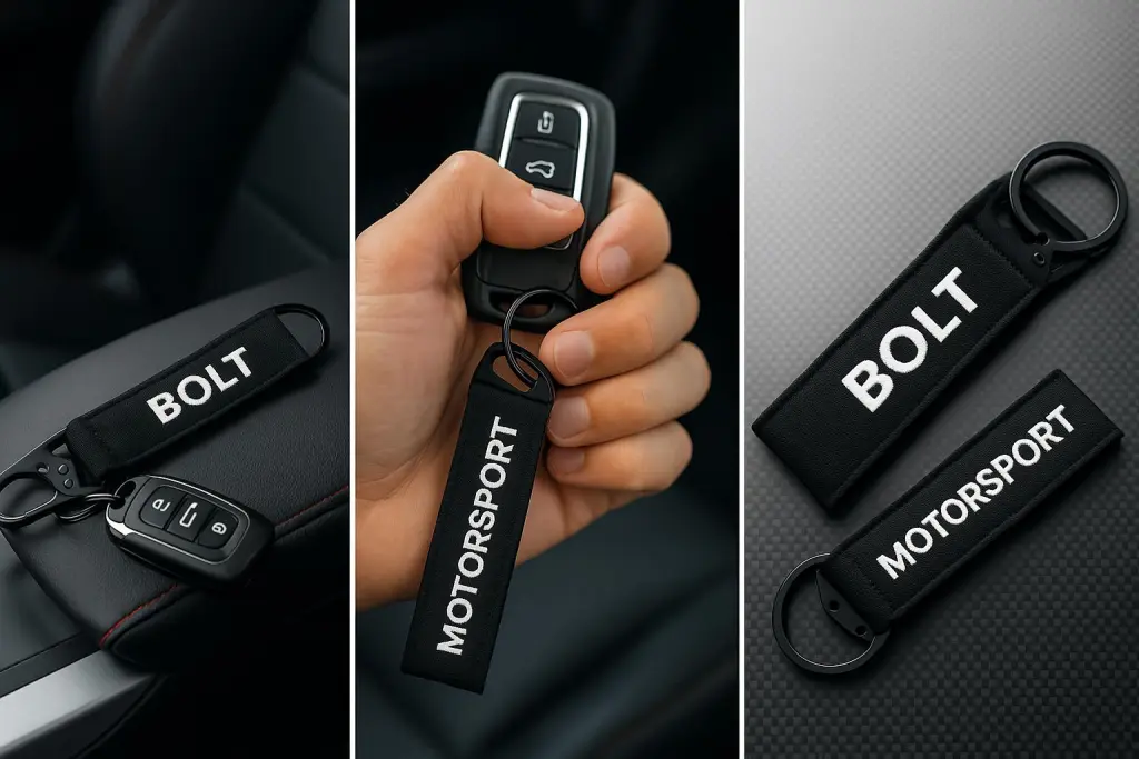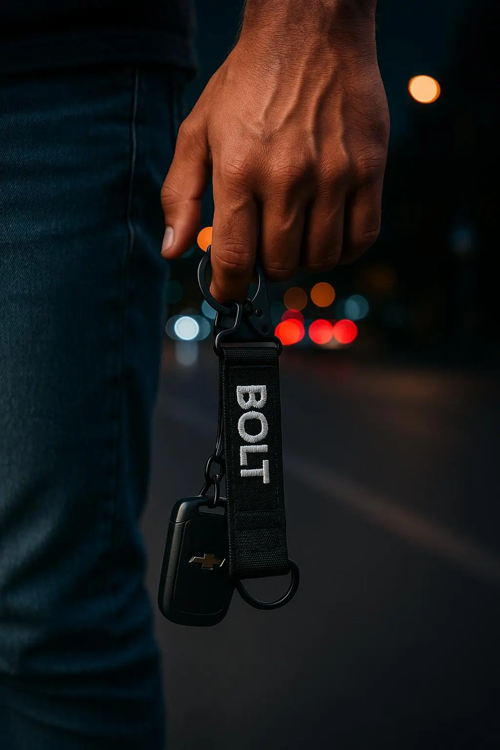 علاقة مفاتيح عملية بتصميم عصري يعكس القوة والبساطة في آنٍ واحد. مصنوعة من خامات متينة تتحمّل الاستخدام اليومي، مع شريط قماشي قوي مطرز بشعار BOLT ولمسة معدنية أنيقة تضيف إحساسًا بالفخامة.